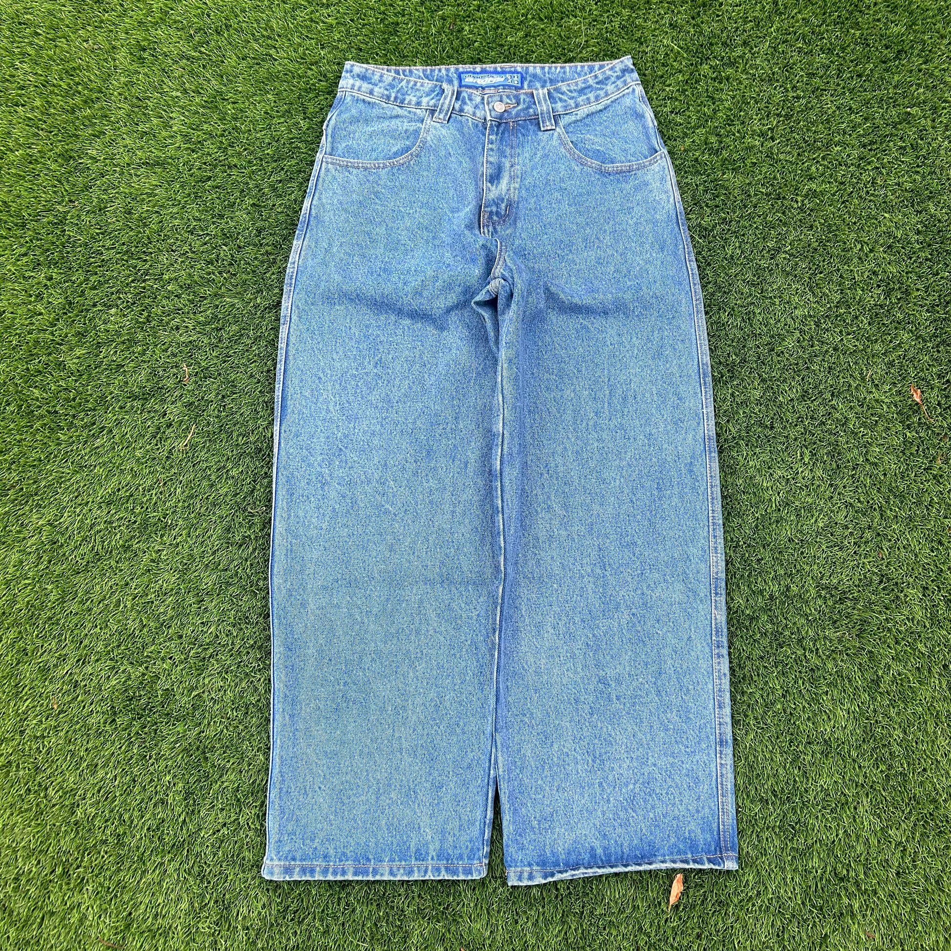 please note these fit an inch big on the waist to eliminate the need to size up! feel free to get whatever size but keep that in mind. inseams also run a tad shorter than listed size due to my interpretation of a vintage pair of jeans. (vintage jeans tend to run short due to lots of wear and washes)